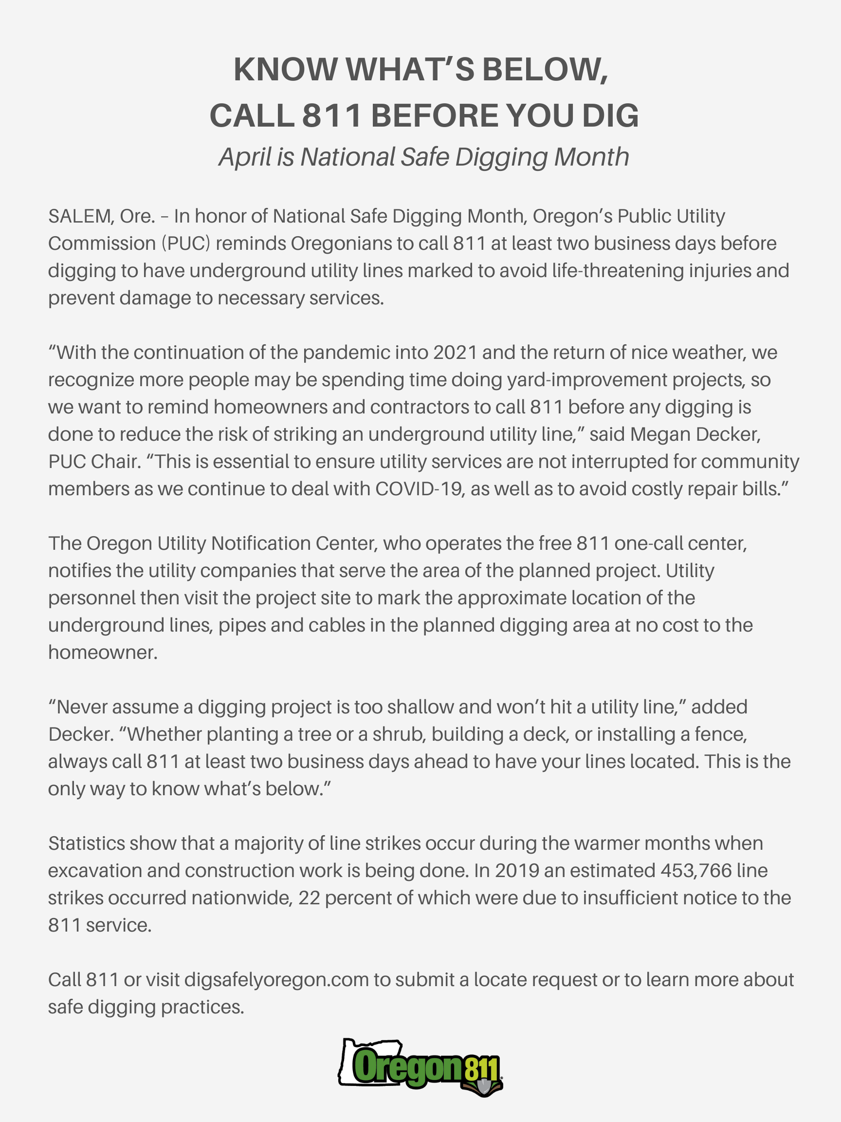 - April is Oregon Dig Safely MonthNovember 7, 2025 - 2:03 PM